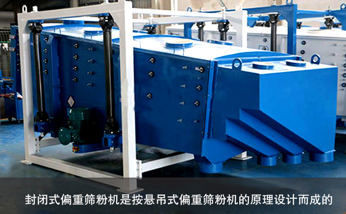 封閉式偏重篩粉機是按懸吊式偏重篩粉機的原理設計而成的 。經過多年使用證明,本機優于懸吊式偏重篩粉機。