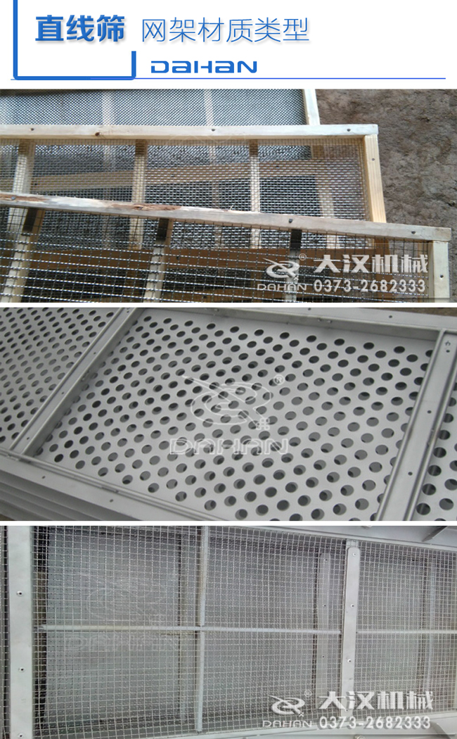 直線篩粉機網架由不銹鋼/鋼質/木質槽鋼焊接而成,中間位置有支撐,防止物料比重重引起篩網下塌,影響篩分效果。