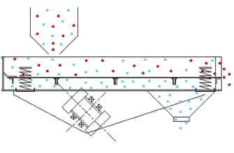 可移動直線篩粉機也叫移動式直線篩粉機為雙振動電機驅動。當兩臺振動電機做同步、反向旋轉時,其偏心塊所產生的激振力在平行于電機軸線的方向相互抵消,在垂直于電機軸的方向疊為一合力,因此篩機的運動軌跡為一直線。兩電機軸相對篩面在垂直方向有一傾角,在激振力和物料自重力的合力作用下,物料在篩面上被拋起跳躍或向前作直線運動,從而達到對物料進行篩選和分級的目的。