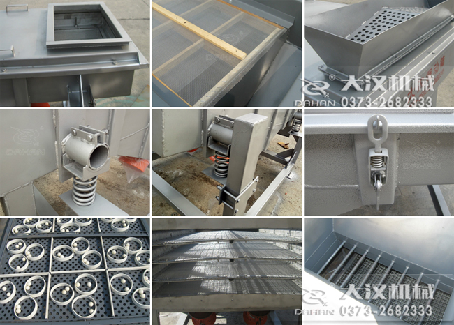 6、減振彈簧:阻止振動傳給地面,同時支持篩箱的全部重量,安裝時,彈簧必須垂直與地面。